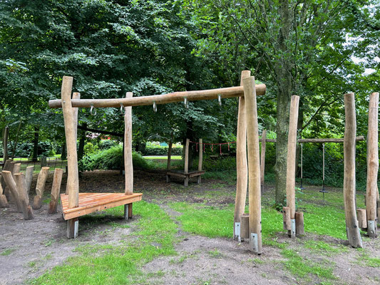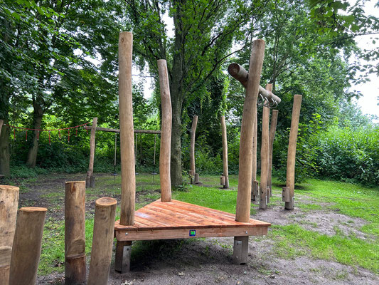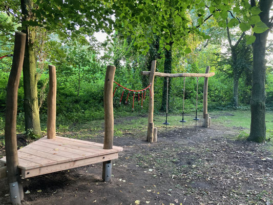 Ab sofort ist der Niedrigseilgarten am Jugendhaus um einige Attraktionen reicher, die direkt bespielt werden können. Gefördert wurde die Erweiterung von der Aktion "Spielräume schaffen" des Vereins Spiellandschaft e.V. in Zusammenarbeit mit dem Kinderhilfswerk.