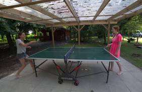 Kinder und Jugendliche haben neben den allgemeinen Spiel- und Sportstätten auch viel Platz, um unter sich zu sein. Unser Jugendhaus hat eine überdachte Tischtennisplatte, einen Außengrill und drinnen viel Platz zum Spielen. Auch ein Kicker steht zur Verfügung.