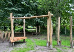 Im Außenbereich steht der neue Niedrigseilgarten bereit für alle, für die der Spielplatz nicht mehr so interessant ist.
